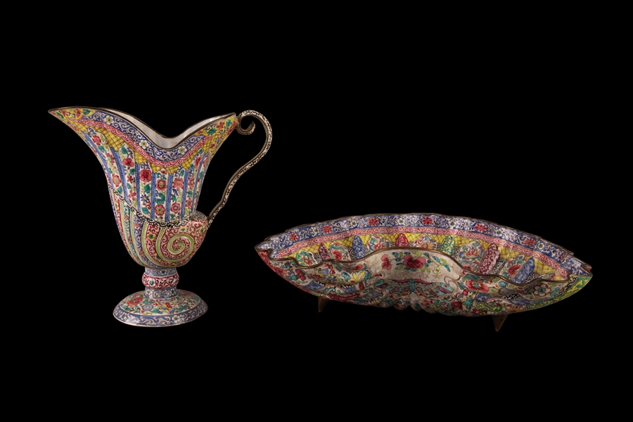 清乾隆銅胎畫琺瑯花卉紋須盤及水澆(央廣網(wǎng)發(fā) 廣東省博物館供圖)