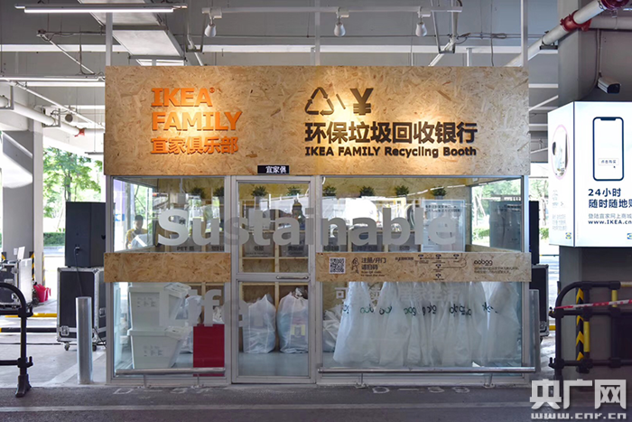 “垃圾回收銀行”是什么?長(zhǎng)什么樣?如何操作?在位于宜家高新店一樓的“垃圾回收銀行”處,記者看到,在一座玻璃房?jī)?nèi)放置著盛放各類垃圾的透明箱以及專用回收袋。玻璃門上方,顯示屏滾動(dòng)播報(bào)該投放點(diǎn)的垃圾總量、市民收益。大門外側(cè),張貼有整個(gè)回收操作流程的使用介紹。