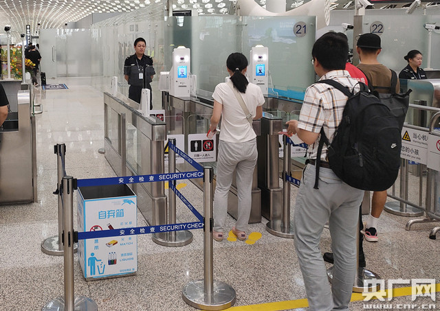 旅客可通過身份證和人臉識別經(jīng)由入口閘機進入智能安檢通道(央廣網(wǎng)發(fā) 通訊員李袁晶 攝)
