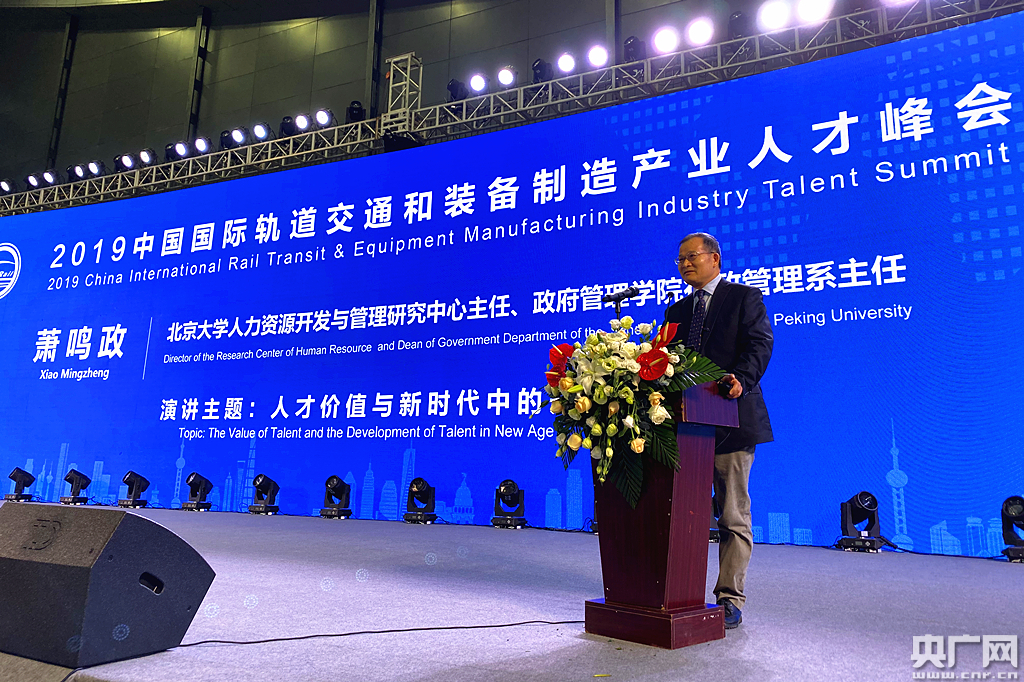 蕭鳴政教授帶來主題演講《人才價(jià)值與新時(shí)代中的開發(fā)》(央廣網(wǎng)記者堯遙 攝)