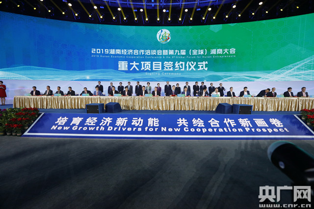 央廣網(wǎng)益陽10月29日消息(記者鄧文輝)今天(29日)上午,2019湖南經(jīng)濟(jì)合作洽談會暨第九屆(全球)湘商大會在湖南益陽開幕。包括35家世界500強(qiáng)、中國500強(qiáng)、中國民營500強(qiáng)在內(nèi)的共計(jì)1000余家知名企業(yè),255家全球湖南商會,銀行、證券、保險(xiǎn)等金融機(jī)構(gòu),高校、科研機(jī)構(gòu),湖南省內(nèi)民營企業(yè)家代表以及兄弟省區(qū)市代表團(tuán)匯聚一堂,同敘鄉(xiāng)情、共享機(jī)遇,共簽署各類投資合同、協(xié)議項(xiàng)目237個,項(xiàng)目總投資為1660.72億元,引進(jìn)資金1633.18億元。