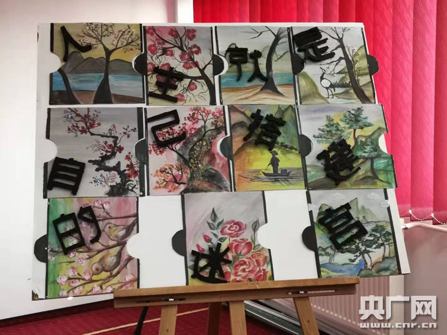德瓦市藝術(shù)學(xué)校學(xué)生創(chuàng)作的中國畫(央廣網(wǎng)記者 曹美麗 攝)