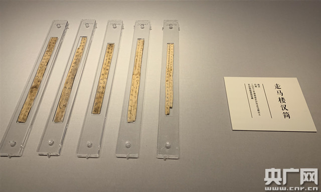 本次展覽中展出的長沙走馬樓漢簡(央廣網(wǎng)記者 姜文婧 攝)