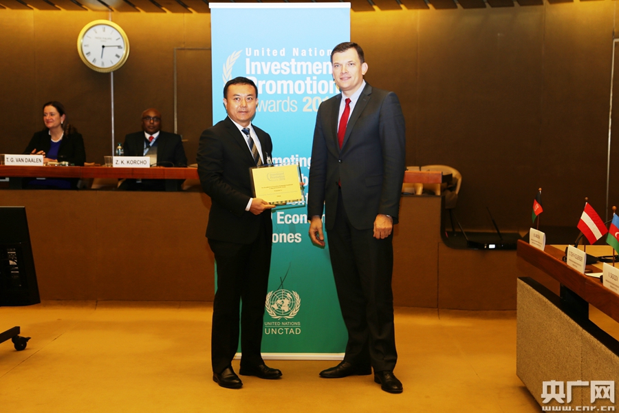 該獎項(xiàng)以聯(lián)合國名義頒獎。會上,聯(lián)合國貿(mào)易和發(fā)展會議(以下簡稱“聯(lián)合國貿(mào)發(fā)會議”)高度贊揚(yáng)廣州開發(fā)區(qū)在促進(jìn)國際投資及經(jīng)濟(jì)園區(qū)可持續(xù)發(fā)展方面的突出成就,并邀請白俄羅斯常駐聯(lián)合國日內(nèi)瓦代表大使兼常駐聯(lián)合國秘書長尤里·安布拉澤維奇先生頒獎。黃埔區(qū)區(qū)長、廣州開發(fā)區(qū)管委會常務(wù)副主任陳勇代表該區(qū)領(lǐng)獎。