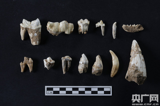陜西南鄭疥疙洞遺址食肉類動(dòng)物化石(央廣網(wǎng)發(fā) 圖片由陜西省考古研究院提供)