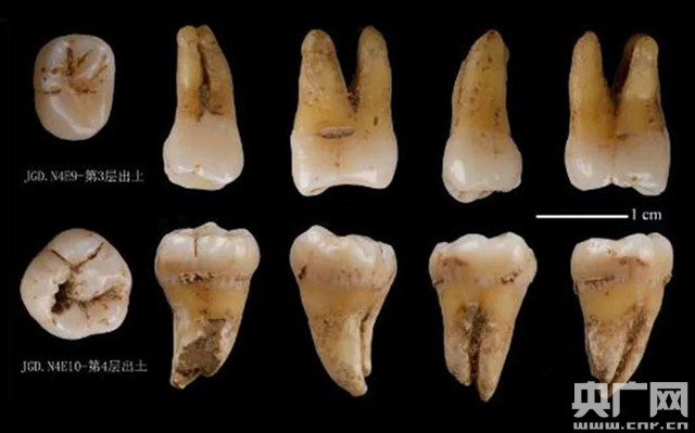 陜西南鄭疥疙洞遺址原生地層出土人類牙齒化石(央廣網(wǎng)發(fā) 圖片由陜西省考古研究院提供)