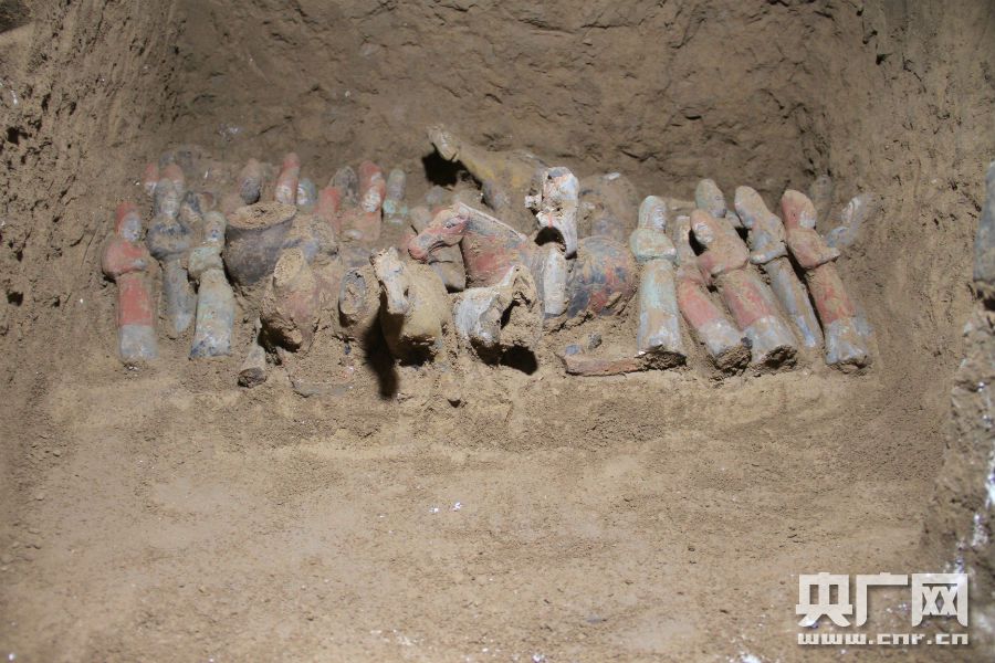 陶俑出土現(xiàn)場(央廣網(wǎng)發(fā) 陜西省考古研究院供圖)