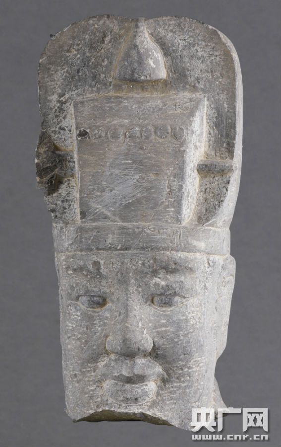 墓室天井出土的石人頭(央廣網(wǎng)發(fā) 陜西省考古研究院供圖)