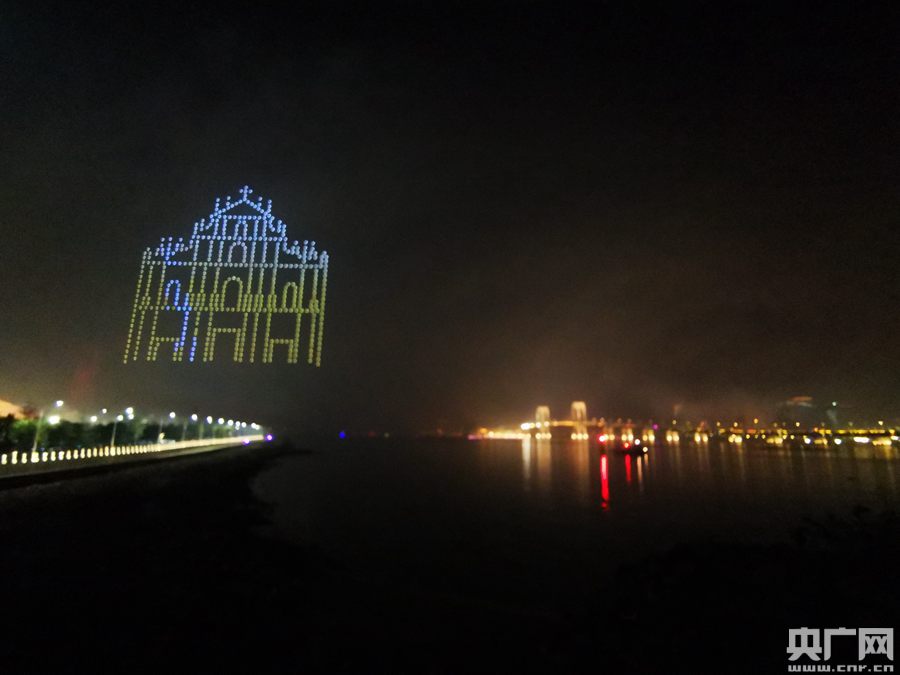 在第三篇章“澳珠一家、鄰里情深”,伴隨著《浪漫珠!返囊魳(lè)聲中,無(wú)人機(jī)編隊(duì)組成的“珠海大劇院”在漫天焰火背景中驚艷亮相,猶如向海而生的“日月貝”,熠熠閃耀;隨后,無(wú)人機(jī)又在空中變成兩只大手緊緊握在一起;伴隨著《澳門的對(duì)面是橫琴》的悠揚(yáng)樂(lè)章, “澳珠一家親”五個(gè)大字造型閃耀在璀璨夜空……這是一場(chǎng)家人的聚會(huì),親情在蔓延、祝福在流淌,澳門與珠海,就像兩束光簇?fù)碓谝黄,熠熠初心照亮未?lái)。