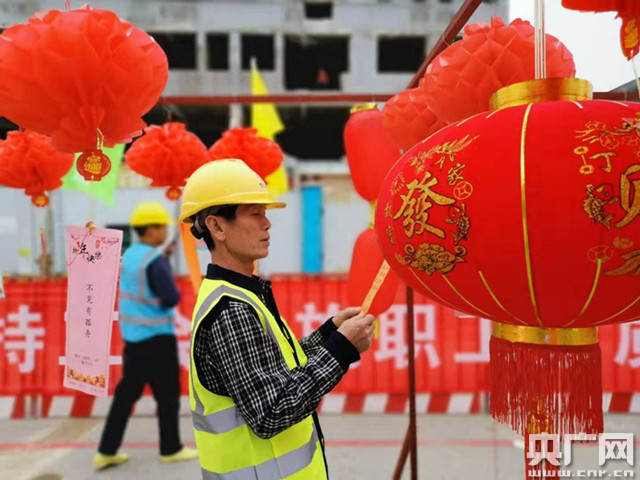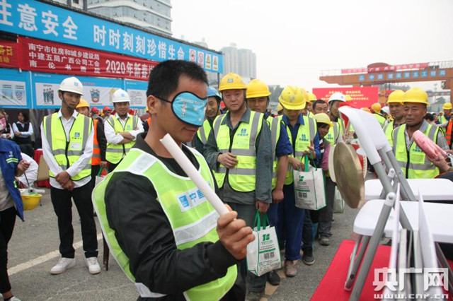 工人師傅在參加新春游園活動(央廣網(wǎng)發(fā) 照片由中建五局廣西公司提供)