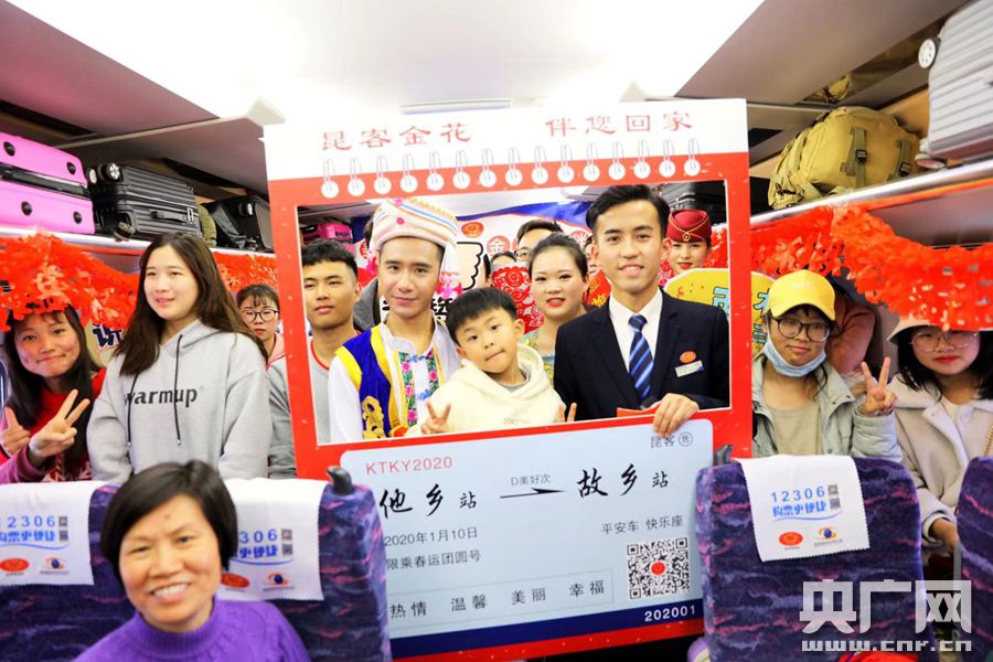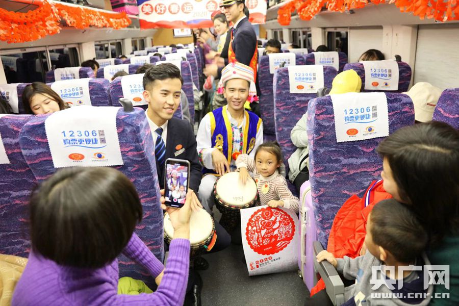 2020年春運(yùn)于1月10日正式開始,截至2月18日,為期40天,在40天的時間里,昆明局集團(tuán)預(yù)計將為970萬人次的旅客出行服務(wù)。為給旅客出行營造溫馨氛圍,自2014年起,每年春運(yùn)昆明局集團(tuán)都會結(jié)合鐵路工作主題和形勢任務(wù),開展主題服務(wù)活動。今年春運(yùn),昆明局集團(tuán)仍以“美好春運(yùn)金花相伴”為主題開展春運(yùn)服務(wù)活動,結(jié)合站車環(huán)境及設(shè)備設(shè)施條件,用窗花、年畫、條幅、彩帶、中國結(jié)等節(jié)慶用品,對車站售票廳、候車室、旅客車廂、餐車等進(jìn)行節(jié)日裝飾。除夕夜還會在部分列車上以送餃子、猜謎語、文藝表演等形式,與旅客開展聯(lián)歡活動,讓旅客在出行中獲得溫馨舒適的良好感受。