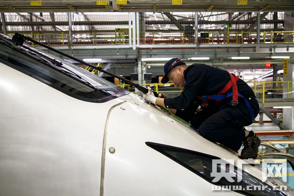 成都動車段青年骨干對動車組車頭雨刷進(jìn)行維修(央廣網(wǎng)發(fā) 通訊員供圖)