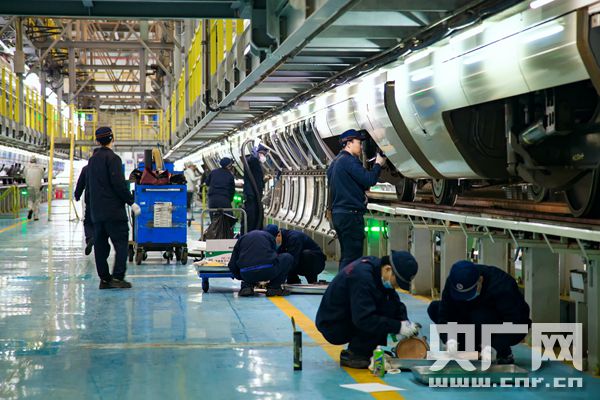 成都動車段檢修庫內(nèi)人員各司其職(央廣網(wǎng)發(fā) 通訊員供圖)