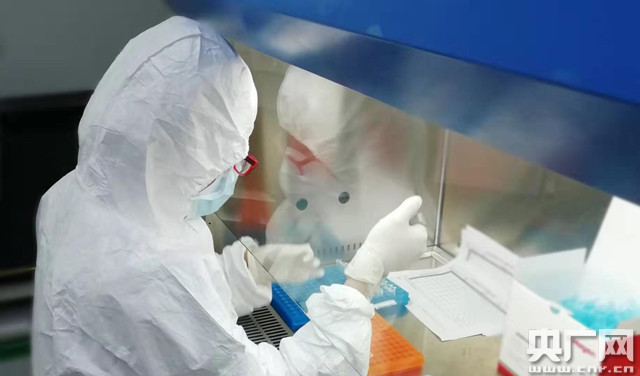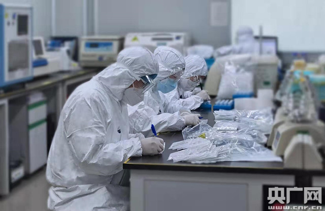 位于廣州國際生物島的金域醫(yī)學總部實驗室是呼吸疾病國家重點實驗室病毒診斷研究分室,按照P2+實驗室建設標準建設。在實驗室內(nèi),近20臺PCR擴增儀和相關(guān)配套儀器全速運轉(zhuǎn),身穿白色防護服“全副武裝”的檢驗人員正加緊對樣本進行核酸檢驗。