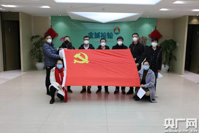 金域醫(yī)學正式成立抗擊新型冠狀病毒肺炎武漢先鋒隊臨時黨支部(央廣網(wǎng)發(fā) 黃浦區(qū)供圖)