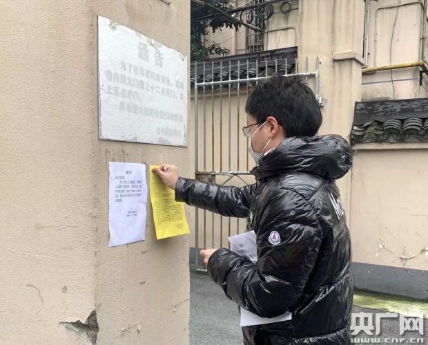 社區(qū)工作人員張貼疫情防控知識(央廣網發(fā) 杭州市江干區(qū)凱旋街道供圖)