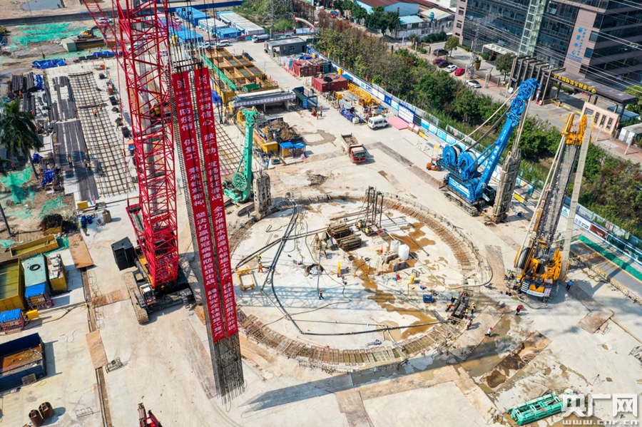 △珠江三角洲水資源配置工程土建施工A5標(biāo),全標(biāo)段首幅鋼筋籠吊裝成功航拍圖(央廣網(wǎng)發(fā) 廣東省水利廳供圖)