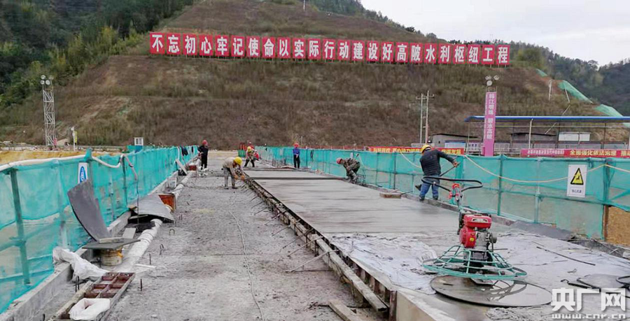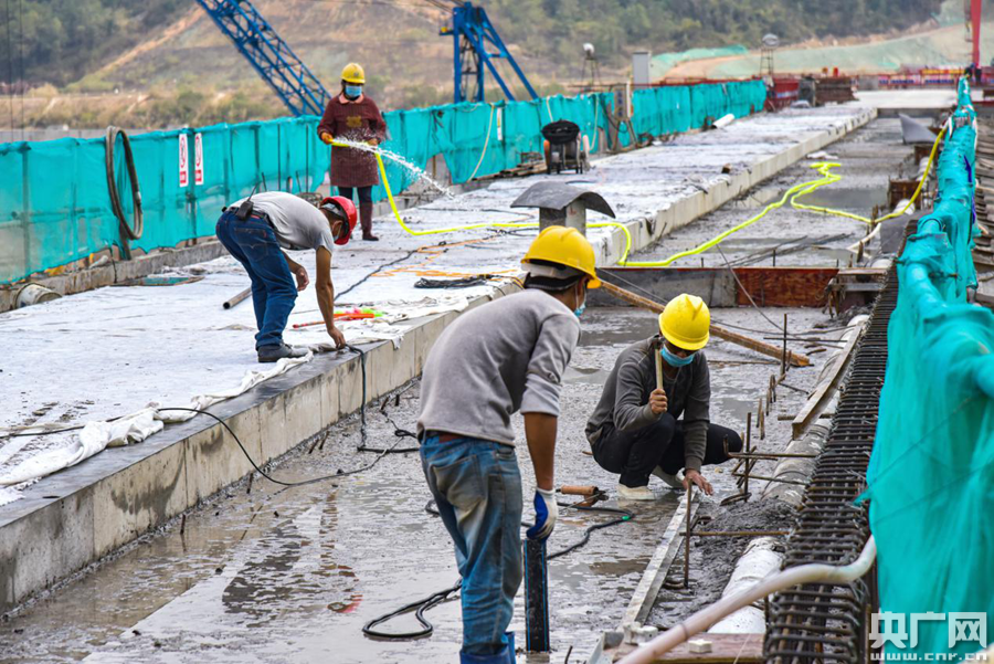 △水利人在鋪設(shè)韓江高陂水利樞紐工程重力壩路面(央廣網(wǎng)發(fā) 廣東省水利廳供圖)