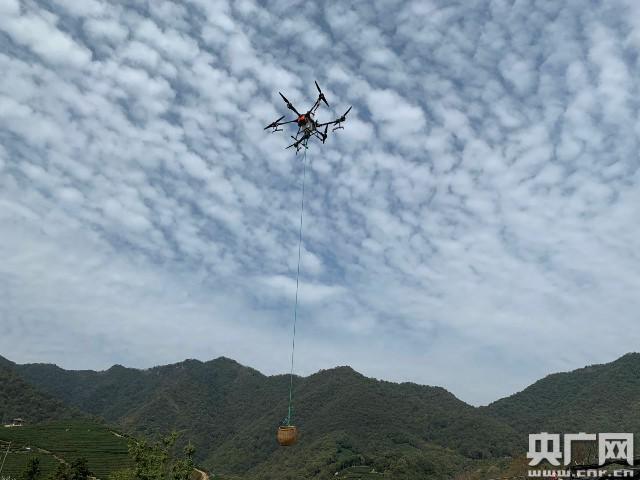 無(wú)人機(jī)運(yùn)送茶葉(央廣網(wǎng)發(fā) 曹露浩攝)