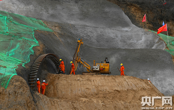 央廣網(wǎng)西安3月19日消息(記者劉濤 通訊員周博倫 郭寅虎)近日,在西安至延安高鐵新延安隧道出口,數(shù)臺(tái)機(jī)械發(fā)出陣陣轟鳴,建設(shè)人員進(jìn)行洞口管棚導(dǎo)向管安裝、場(chǎng)地平整、邊坡防護(hù)等工作,工程有序復(fù)工。