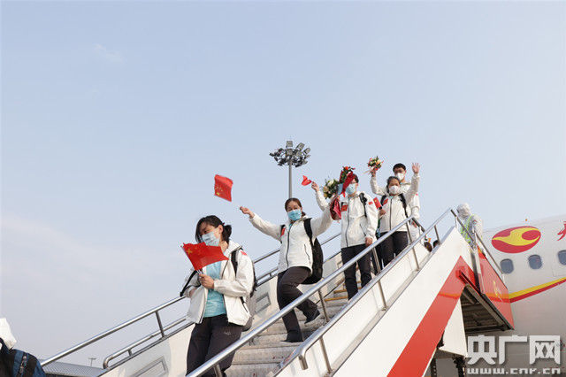 央廣網(wǎng)天津3月24日消息(記者夏震宇 褚夫晴)3月24日下午,天津?qū)谥г魇┽t(yī)療隊(duì)的106名醫(yī)護(hù)人員乘機(jī)抵達(dá)天津?yàn)I海國(guó)際機(jī)場(chǎng),結(jié)束了他們42天的援助工作,順利返回天津。2月12日以來,天津市先后從全市50家單位(6家市級(jí)部門、27家醫(yī)院、17家疾控中心),抽調(diào)4批共134人(管理人員8人、新聞?dòng)浾?人、醫(yī)務(wù)人員124人)組成醫(yī)療隊(duì)馳援恩施。