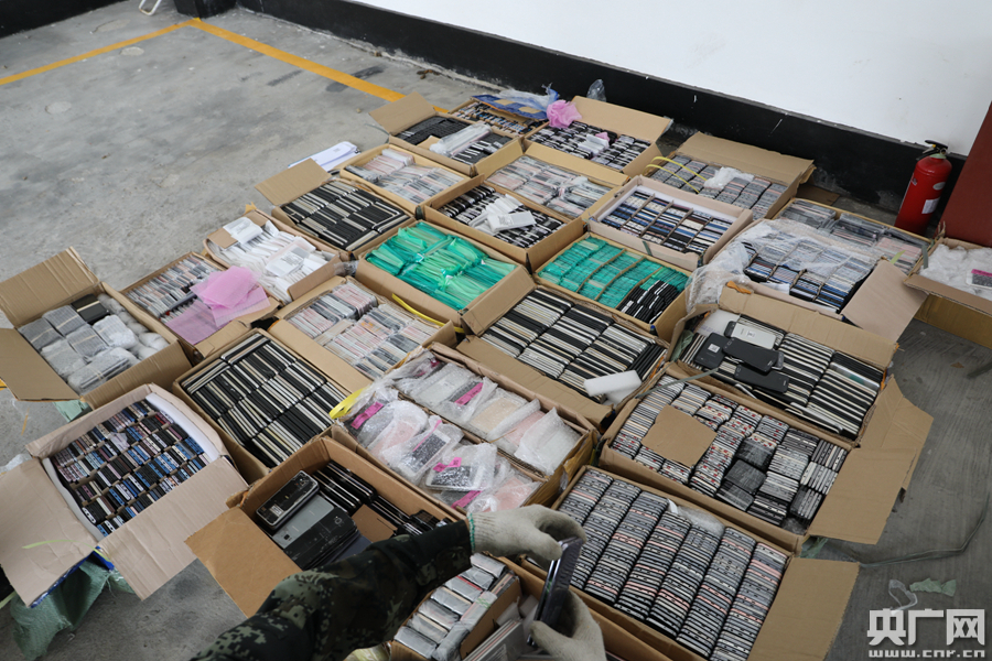 惠州海事局清點(diǎn)檢查電子產(chǎn)品(央廣網(wǎng)發(fā) 通訊員供圖)