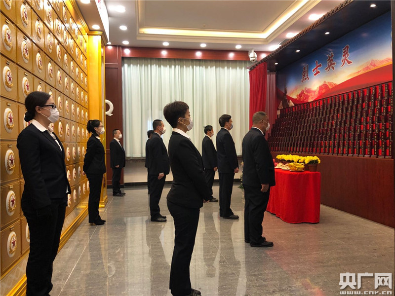 擦拭骨灰盒,擦拭墓碑,然后敬獻(xiàn)鮮花…天津烈士陵園文管部部長(zhǎng)顧連成早已習(xí)慣了這項(xiàng)工作。聽(tīng)到要代家屬進(jìn)獻(xiàn)一些鮮果、祭品,他早早就做好了準(zhǔn)備。烈士劉振義的家屬遠(yuǎn)在內(nèi)蒙古,不能到現(xiàn)場(chǎng)進(jìn)行寄托哀思。顧連成用手機(jī)視頻和烈士家屬連線(xiàn),現(xiàn)場(chǎng)朗讀了一封來(lái)自異鄉(xiāng)的家信,把子女的哀思真真切切傳遞到烈士身邊。