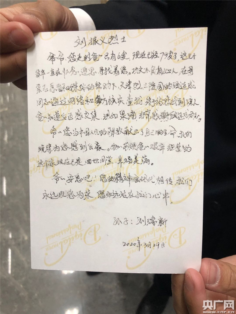 烈士劉振義子女給烈士寫(xiě)的家信(央廣網(wǎng)記者夏震宇 攝)