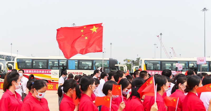 央廣網(wǎng)廣州4月10日消息(記者周羽 通訊員粵衛(wèi)信 魏星 游華玲 王雪 林巧文)戰(zhàn)時(shí)無(wú)畏去,春日安然歸。4月10日13時(shí),廣東省援助湖北武漢應(yīng)對(duì)新冠肺炎疫情醫(yī)療隊(duì)183人圓滿完成援助任務(wù),乘機(jī)抵達(dá)廣州。他們是廣東省最后一批撤離武漢的醫(yī)療隊(duì)。