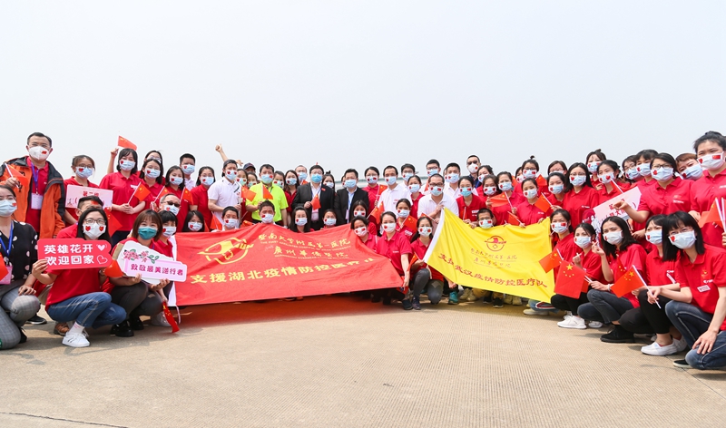 廣東省援助湖北武漢應(yīng)對(duì)新冠肺炎疫情醫(yī)療隊(duì)183人圓滿完成援助任務(wù),乘機(jī)抵達(dá)廣州(央廣網(wǎng)發(fā) 通訊員供圖)