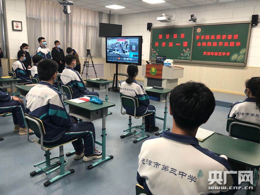 央廣網(wǎng)天津4月20日消息(記者夏震宇)4月20日上午,天津市初、高三年級學(xué)生正式復(fù)課開學(xué),今年的開學(xué)“第一課”和往年有很大的區(qū)別。在天津紅橋區(qū)的天津市第三中學(xué),復(fù)課的同學(xué)們被分散到多個教室上課,每一位同學(xué)之間都保持一米以上的距離。天津三中黨委書記張建昇告訴記者,為了保證師生的安全,學(xué)校按照天津市教委的要求,在應(yīng)急處置、物資和人員保障、做好“日報告、零報告”制度等多個方面做了全面安排,今天的開學(xué)一切井然有序。
