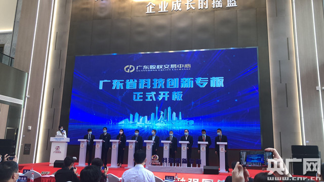 近日,“廣東省科技創(chuàng)新專板”在廣東股權(quán)交易中心展示交易大廳開板,進(jìn)一步吹響鼓勵(lì)綠色金融發(fā)展號(hào)角。廣東股權(quán)交易中心總部位于黃埔區(qū)、廣州開發(fā)區(qū)。(央廣網(wǎng)發(fā)通訊員供圖)