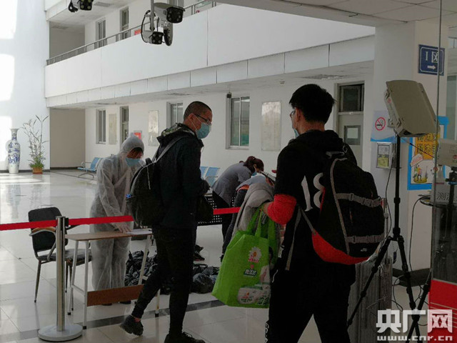 西安電子科技大學(xué)返校學(xué)生通過測溫進入宿舍樓(央廣網(wǎng)記者 雷愷 攝)