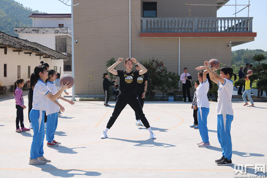 廣東女子籃球隊(duì)代表給廊田村青少年進(jìn)行籃球基本教學(xué)(央廣網(wǎng)發(fā) 通訊員供圖)