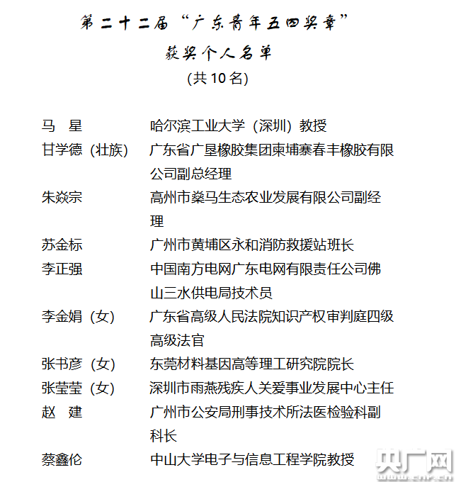 “廣東青年五四獎(jiǎng)?wù)隆笔菆F(tuán)省委、省青聯(lián)授予廣東優(yōu)秀青年個(gè)人及先進(jìn)青年集體的最高榮譽(yù),旨在樹立政治進(jìn)步、品德高尚、貢獻(xiàn)突出的優(yōu)秀青年榜樣和典型,集中展示新時(shí)代廣東青年的精神品格和價(jià)值追求。