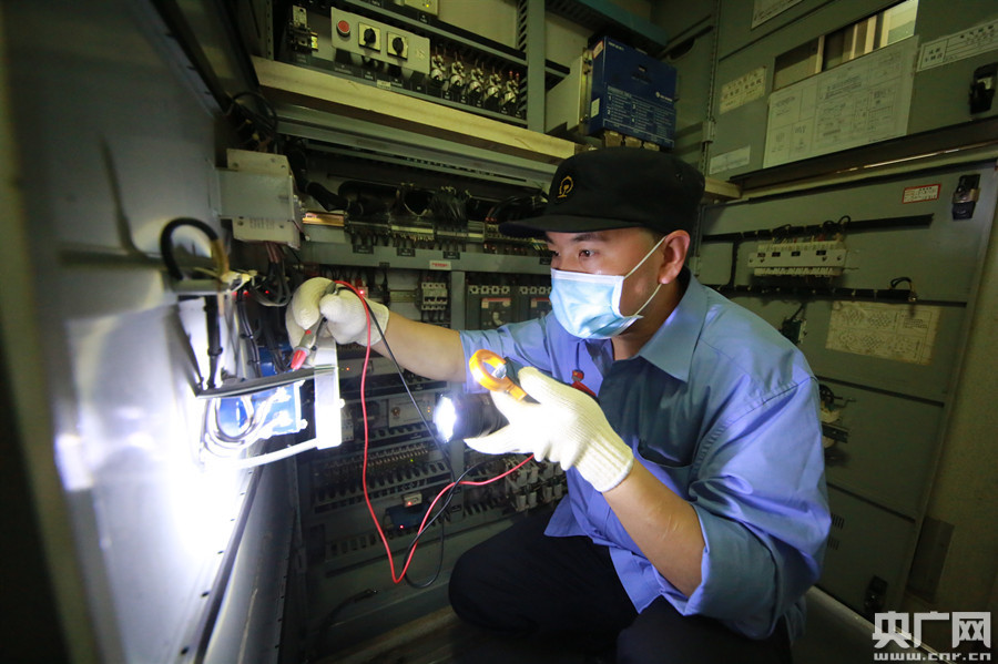 成都車輛段工作人員正在檢修列車(央廣網(wǎng)發(fā) 通訊員供圖)