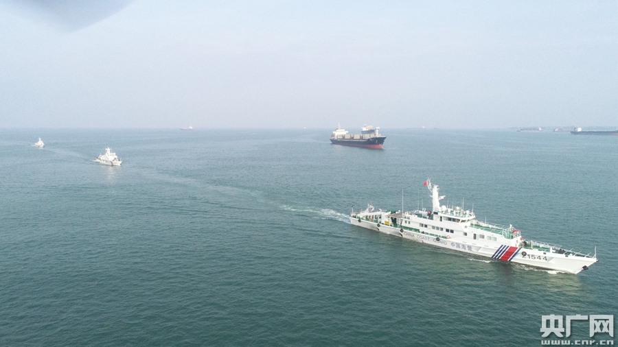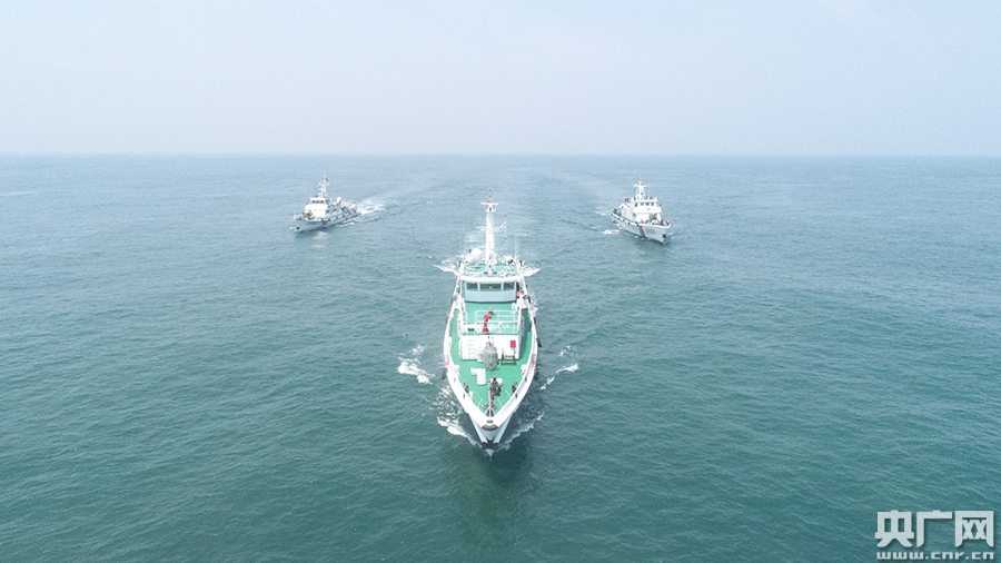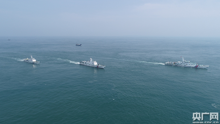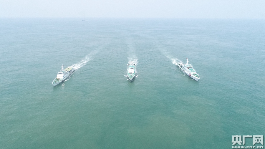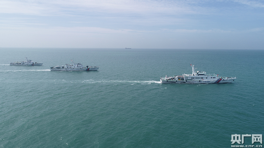 海警艦船開(kāi)展編隊(duì)巡航管護(hù)(央廣網(wǎng)發(fā) 湛江海警局供圖)