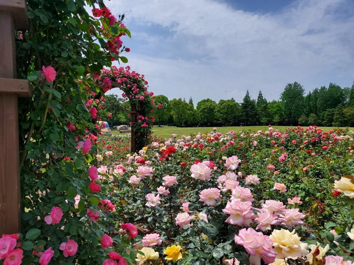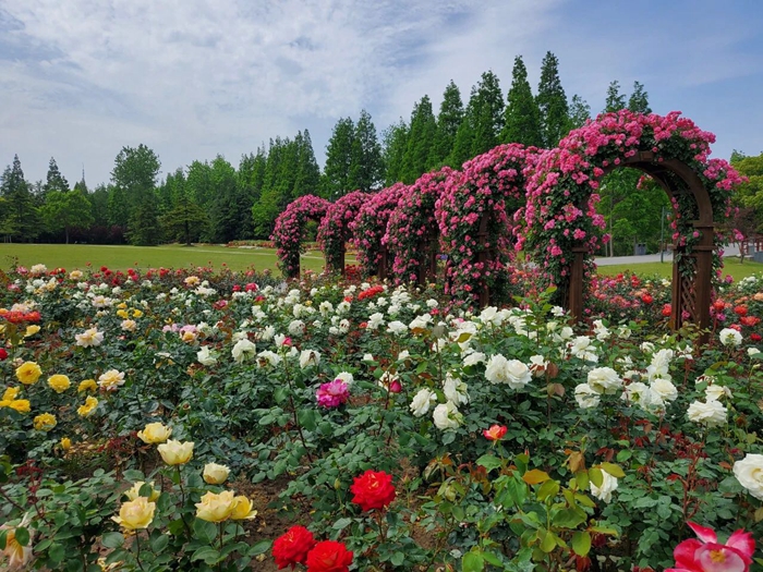 花墻對(duì)面,今年園方還精心布置了大花月季觀賞小景,與花墻遙相呼應(yīng),讓市民游客走進(jìn)月季,近距離欣賞美、拍攝美。