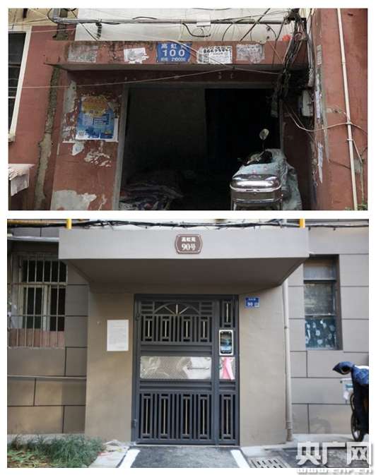單元門改造前后對(duì)比(央廣網(wǎng)發(fā) 秦淮區(qū)住房保障和房產(chǎn)局供圖)