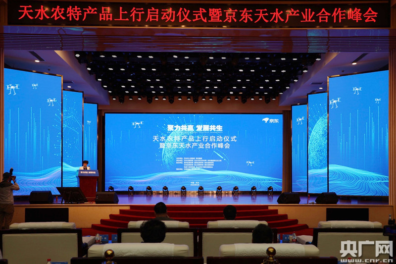 天水農(nóng)特產(chǎn)品的上行啟動(dòng)儀式和京東天水產(chǎn)業(yè)合作峰會(huì)在甘肅省天水市舉行(央廣網(wǎng)記者 王妍 攝)