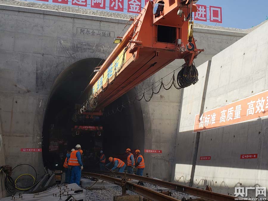 格庫鐵路最長隧阿爾金山隧道鋪通(央廣網(wǎng)發(fā) 穆志鵬 攝)