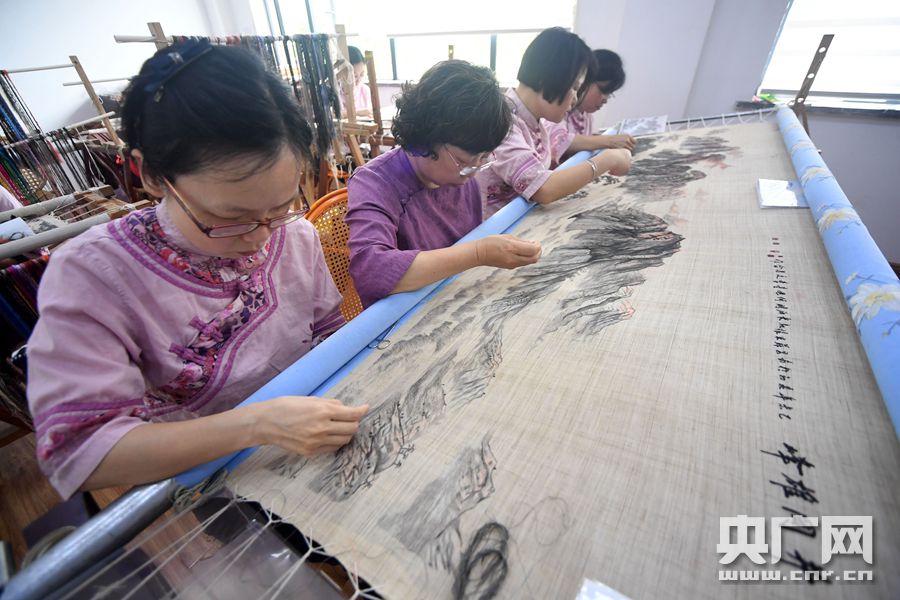 《井岡雄峰》繡制過(guò)程(央廣網(wǎng)發(fā) 江西省新余市委宣傳部供圖)
