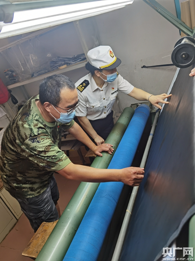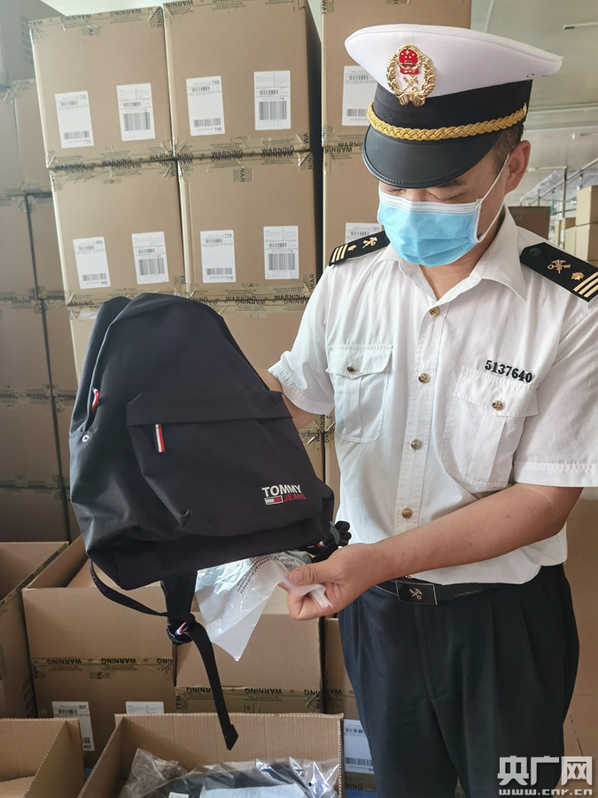 △廣州海關(guān)所屬荔灣海關(guān)關(guān)員對(duì)以市場(chǎng)采購(gòu)貿(mào)易方式的出口箱包進(jìn)行檢疫監(jiān)管(央廣網(wǎng)發(fā) 海關(guān)供圖)