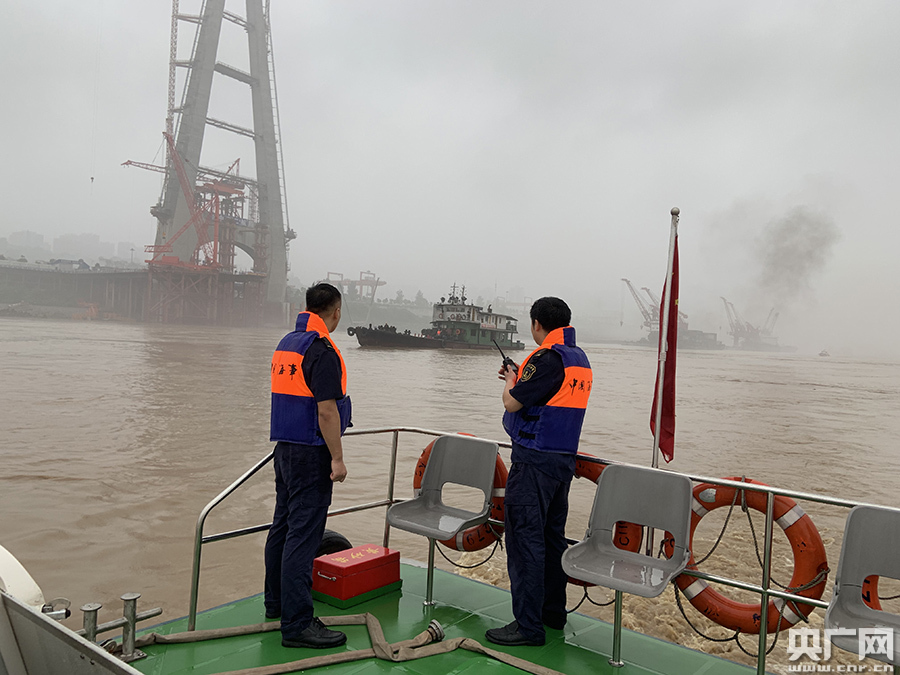 為防止船舶走錨及可能有集裝箱、槽罐等沖入長江危及大橋及港口碼頭、停泊船舶安全,管制期間,重慶海事組織人員到綦江河口進行現(xiàn)場駐守,并調配拖輪“江友1009”“川順慶拖0021”進行現(xiàn)場守護。另外還在下游各港口碼頭重要水域調配拖輪值守,以策安全。
