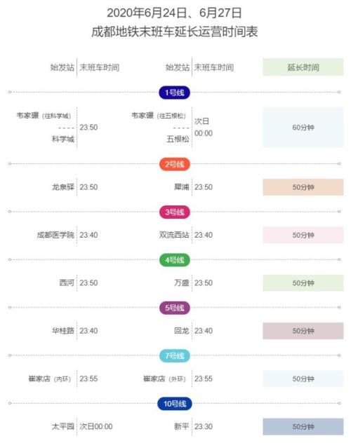 端午節(jié)期間,成都地鐵端午節(jié)前一天及節(jié)假日最后一天(6月24日、6月27日),各線路將延長運營服務(wù)時間50-60分鐘,同時通過增加備用車數(shù)量、靈活采取回段列車及備用列車加開上線等調(diào)整手段,做好大客流情況下的運力保障。