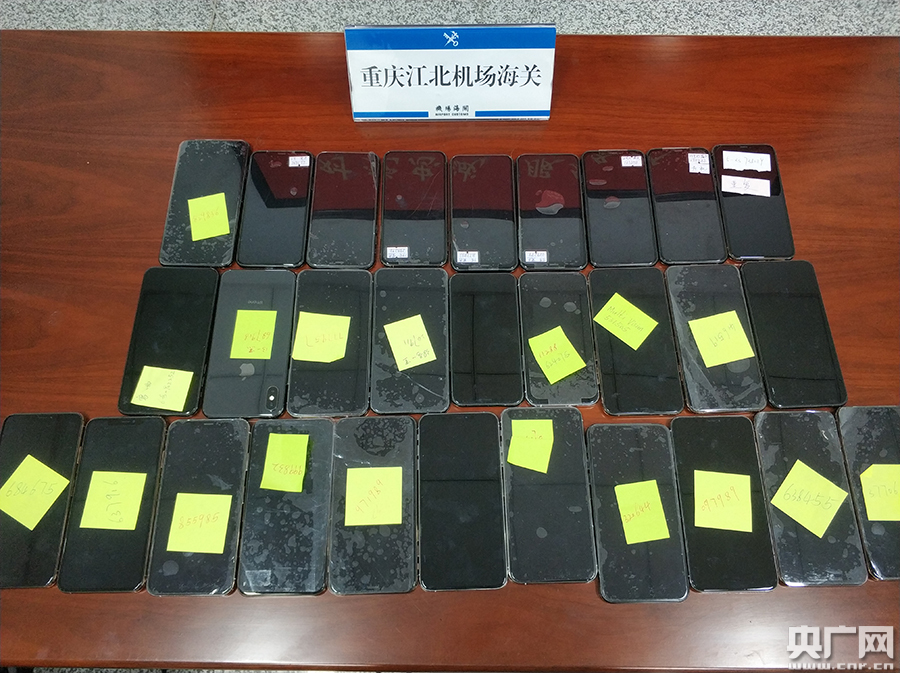 重慶江北機場海關查獲的入境走私手機(央廣網(wǎng)發(fā) 重慶海關供圖)