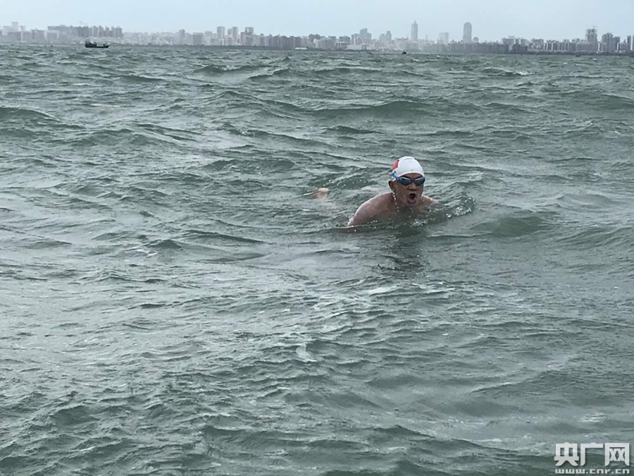 高允銳成為中國(guó)以單右臂游泳橫渡瓊州海峽的第一人(央廣網(wǎng)發(fā) 通訊員供圖)