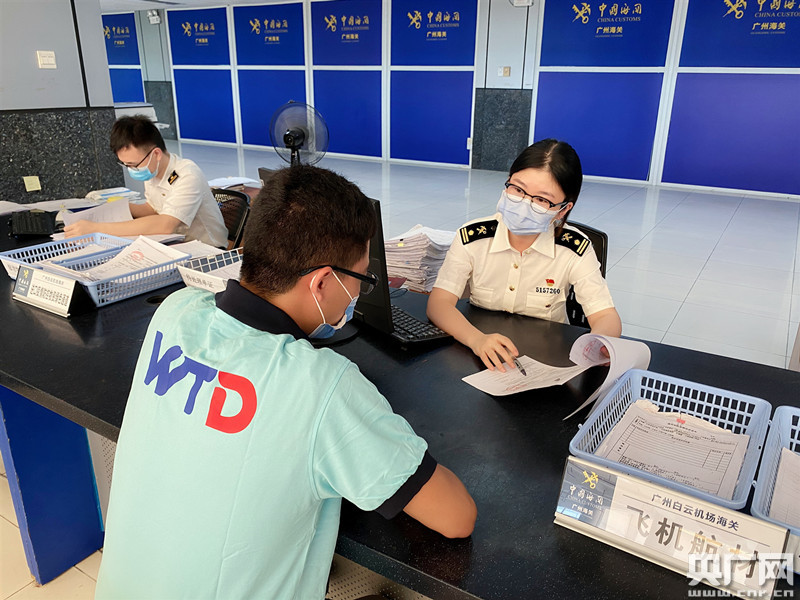 廣州白云機(jī)場海關(guān)關(guān)員向企業(yè)介紹海關(guān)支持飛機(jī)航材進(jìn)口有關(guān)便利措施(央廣網(wǎng)發(fā) 紀(jì)溫泉 攝)