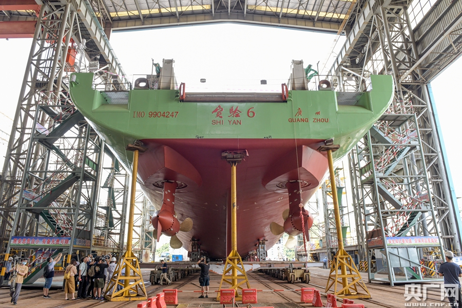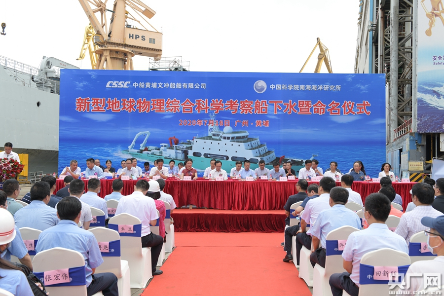 新型地球物理綜合科學(xué)考察船下水暨命名活動(dòng)現(xiàn)場(chǎng)(央廣記者 官文清 攝)