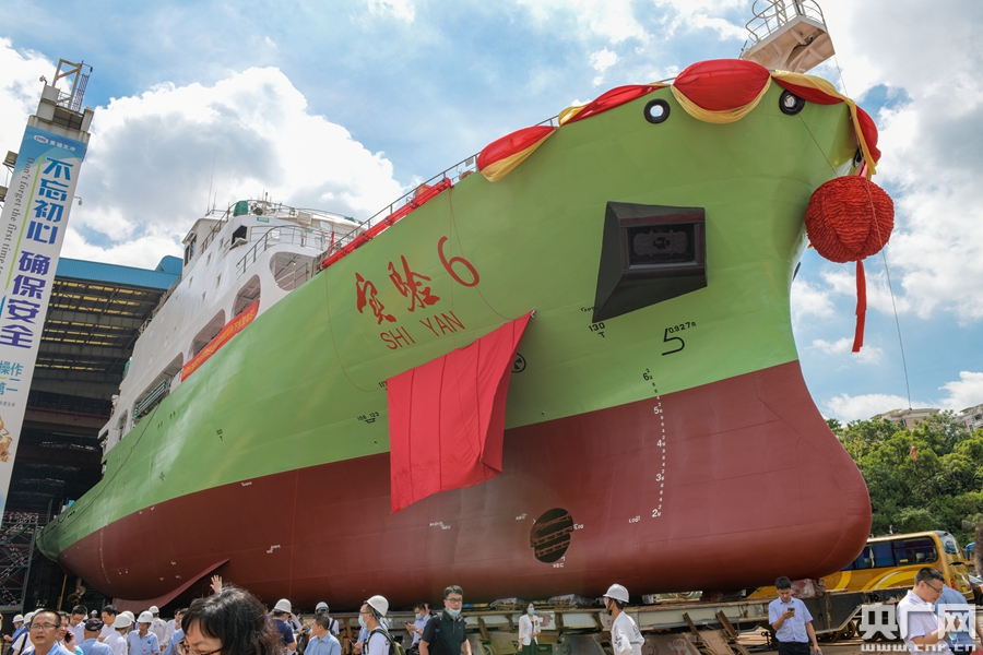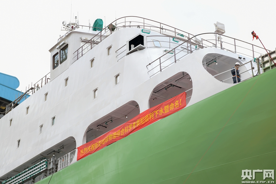 新型地球物理綜合科學(xué)考察船命名為“實(shí)驗(yàn)6”(央廣記者 官文清 攝)